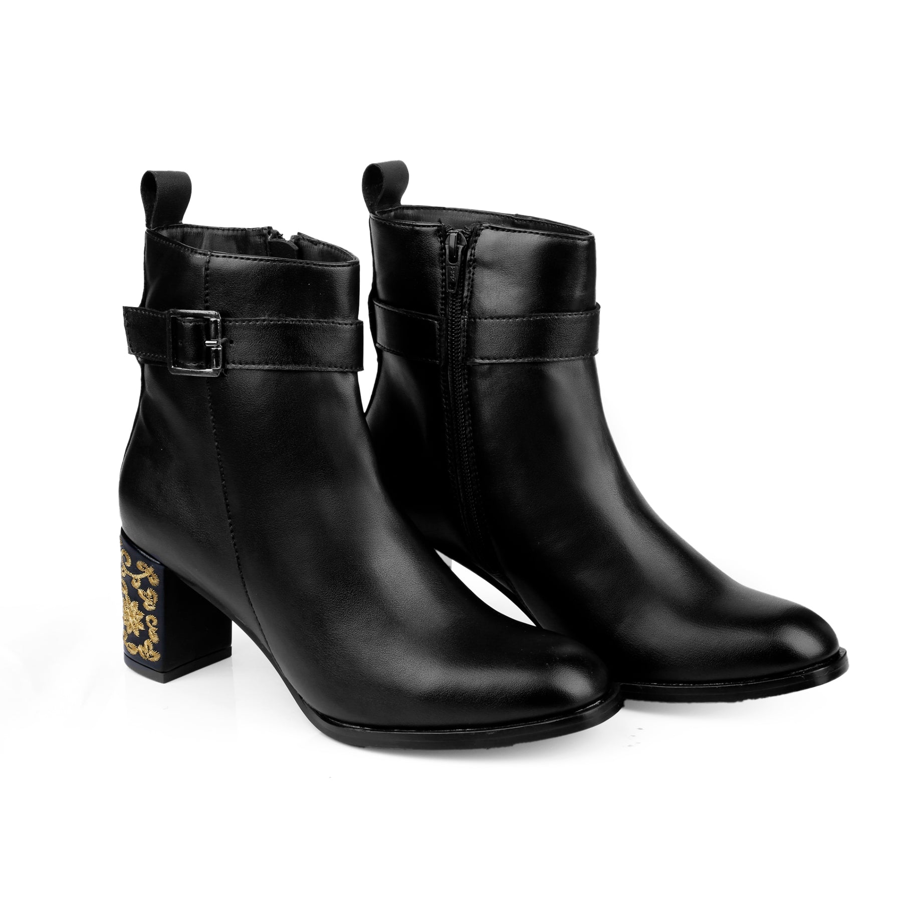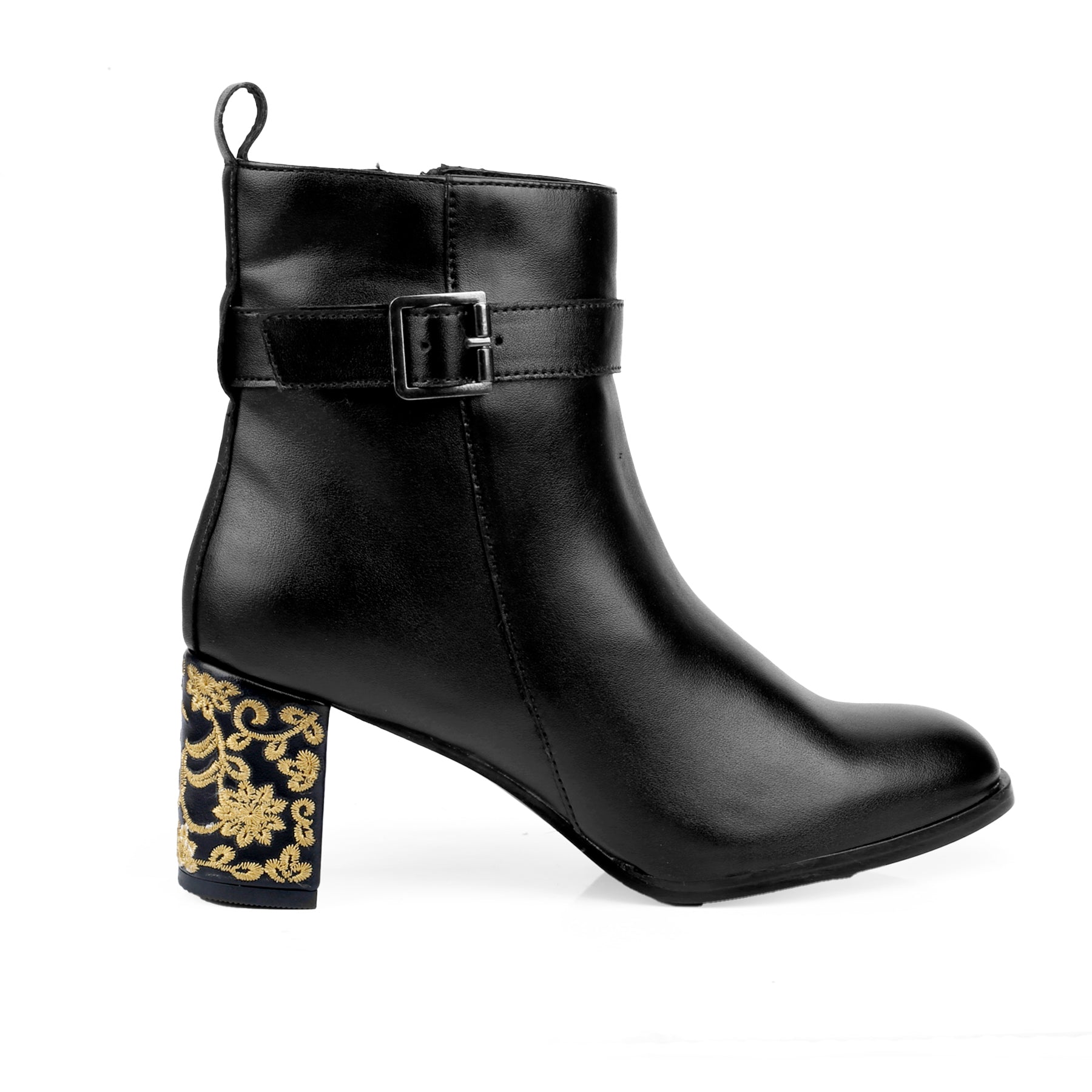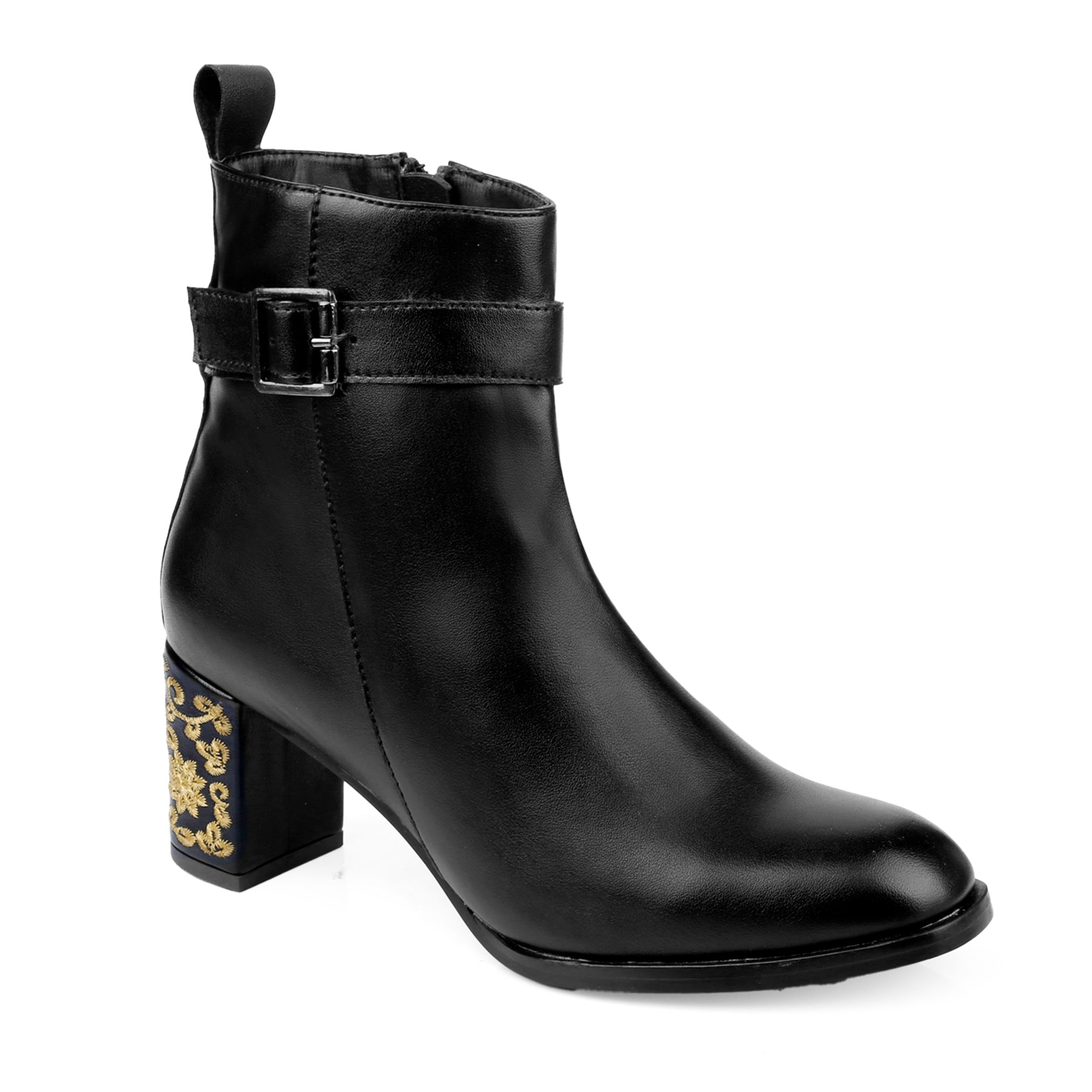 The boots you'll die for. The embroidered Heels in Ankle Boots is a testament to Trendiest Fashion Launch. Elevate your Party or Casual Fusion Wear look with this ultra fashionable and unique pair of Classic boot. Made with the finest material, they are designed to perfection and crafted with immense detailing. The zip closure, loop and the buckle lock ensures a secure fit. It's a perfect completion to your party or casual attire. Wear it the way you want and flaunt the embroidered Heels.
