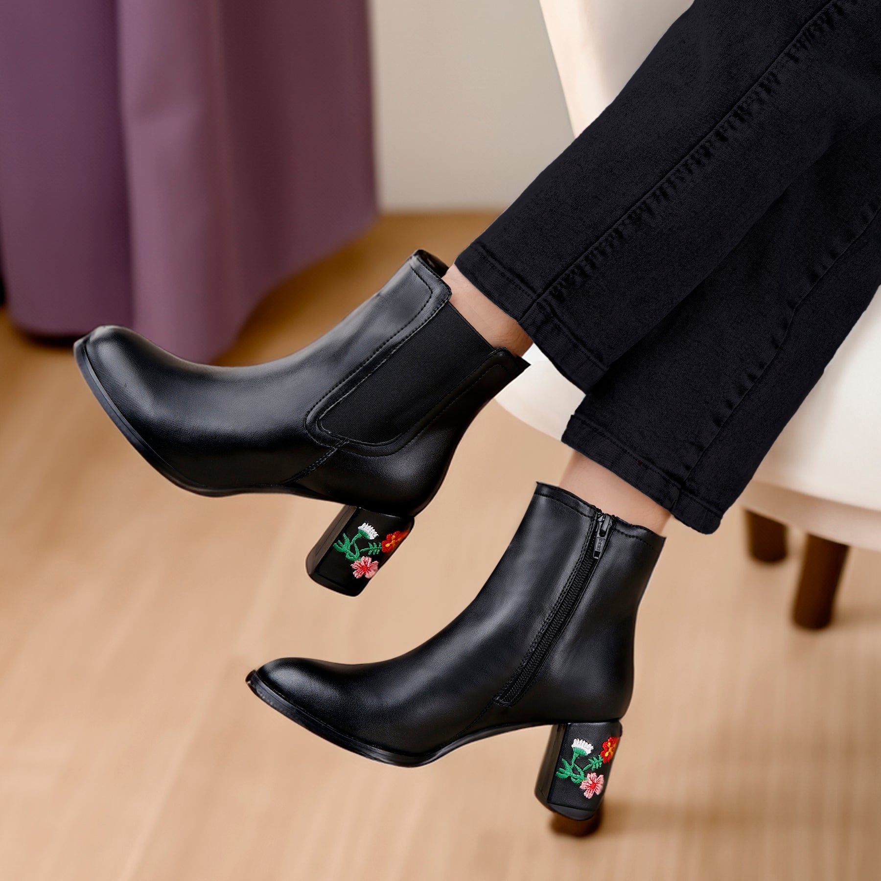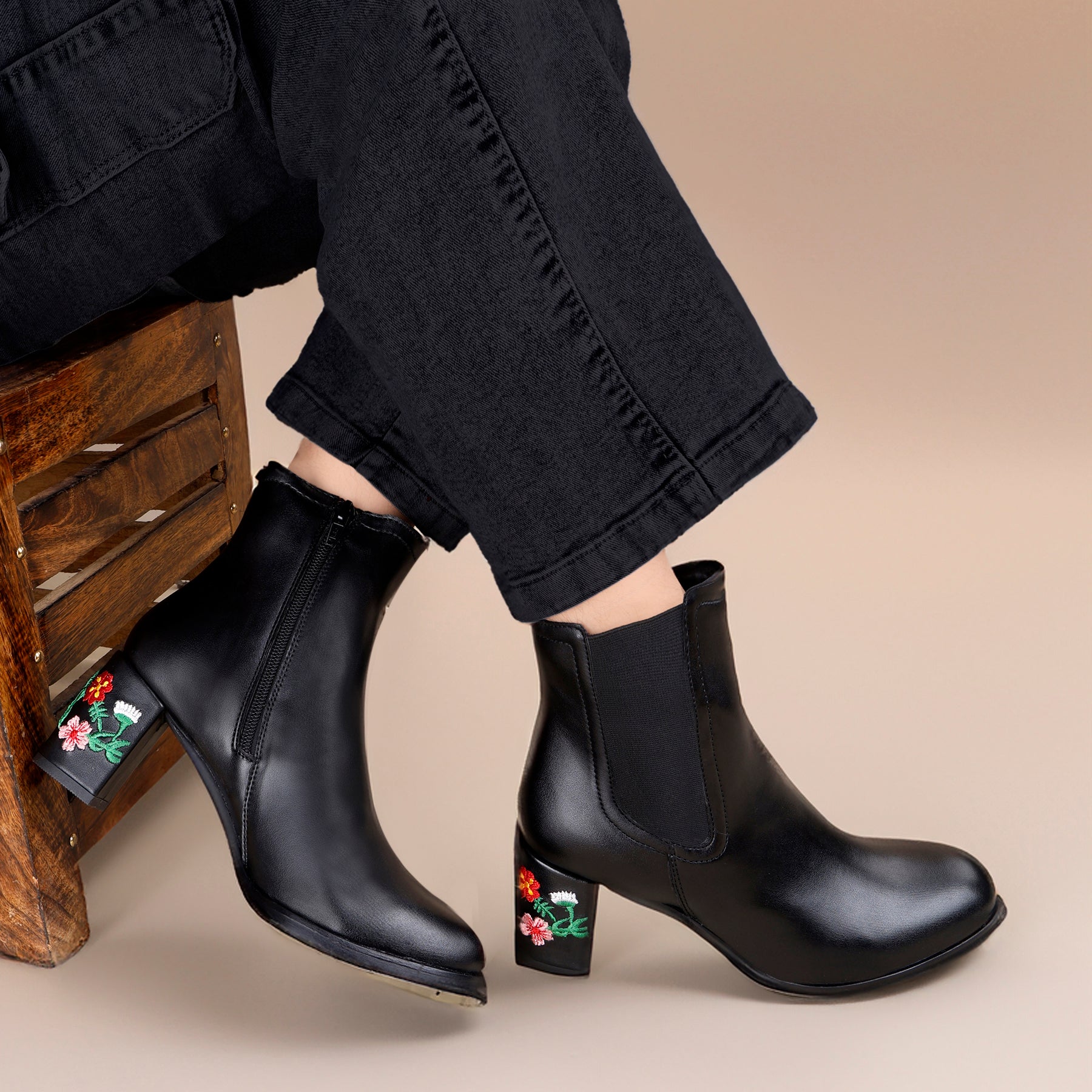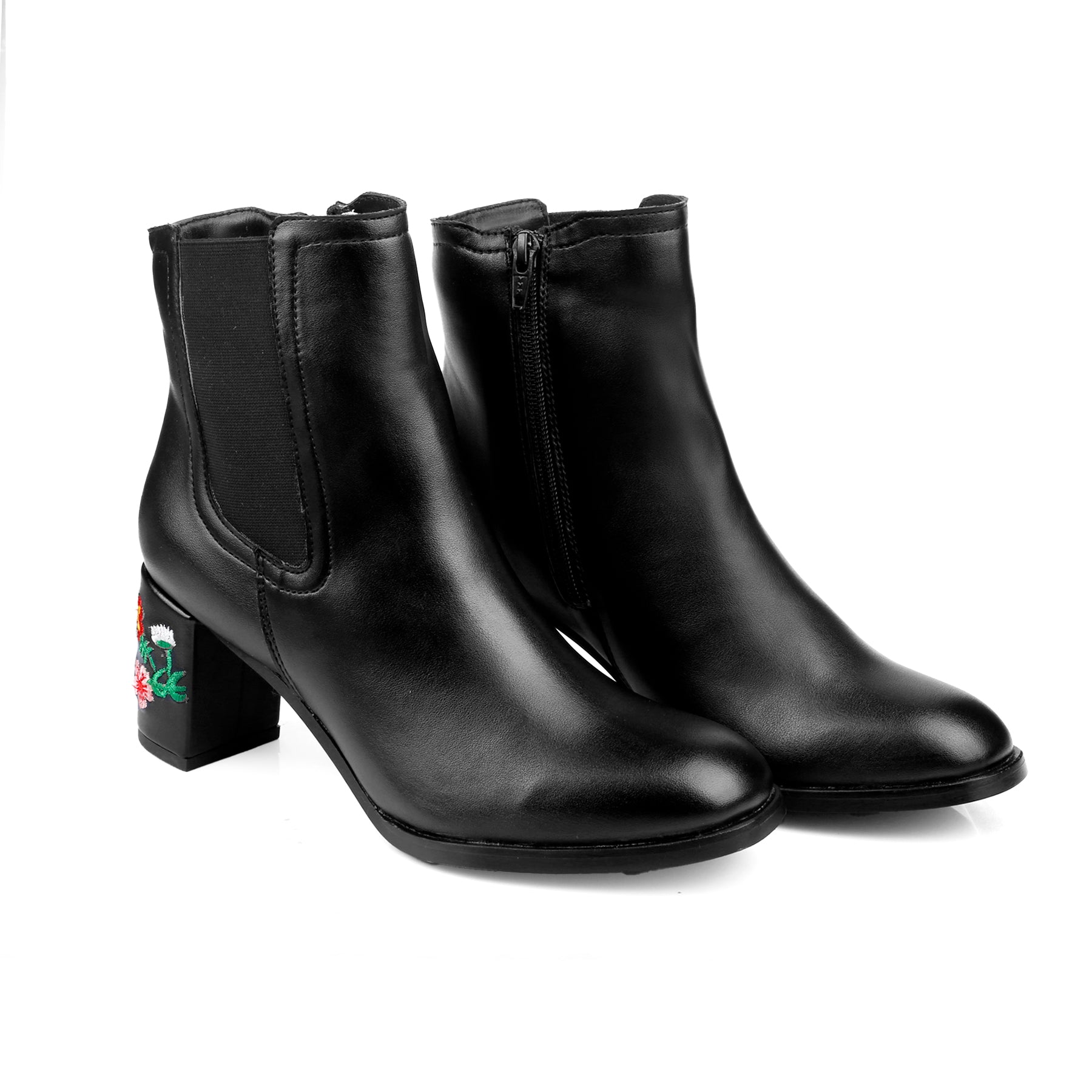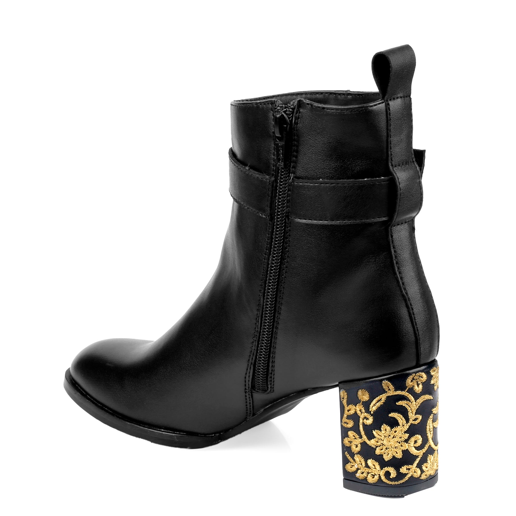 The boots you'll die for. The embroidered Heels in Ankle Boots is a testament to Trendiest Fashion Launch. Elevate your Party or Casual Fusion Wear look with this ultra fashionable and unique pair of Classic boot. Made with the finest material, they are designed to perfection and crafted with immense detailing. The zip closure, loop and the buckle lock ensures a secure fit. It's a perfect completion to your party or casual attire. Wear it the way you want and flaunt the embroidered Heels.