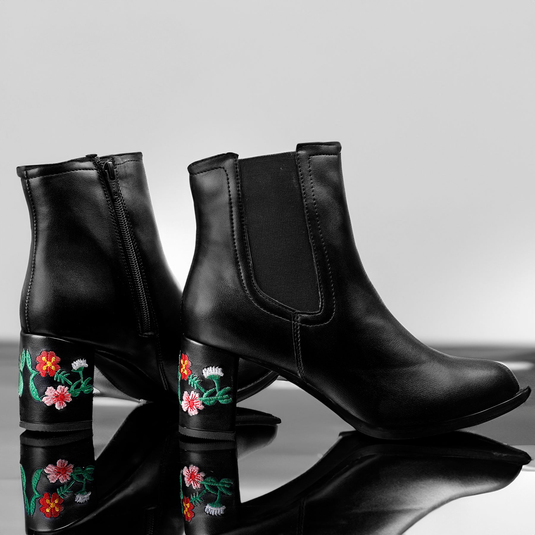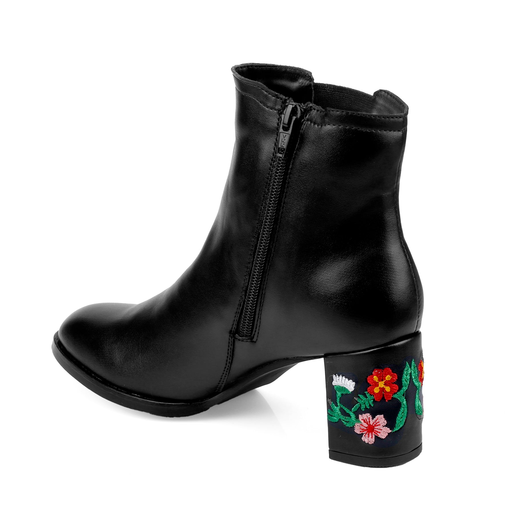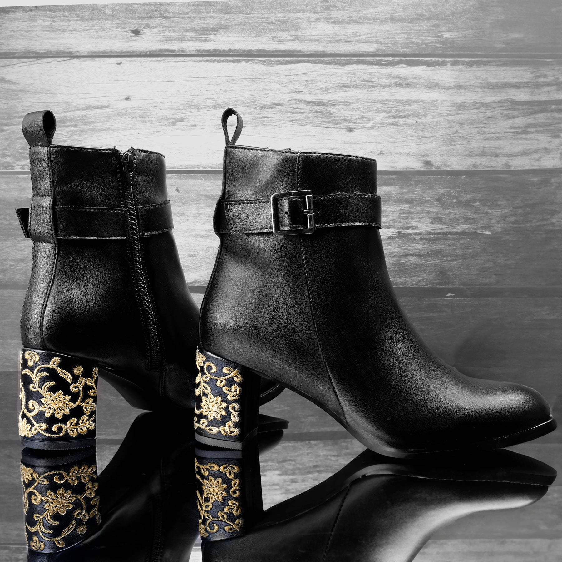 Embroidered Heels Buckle and Zipper Ankle Boots for Women