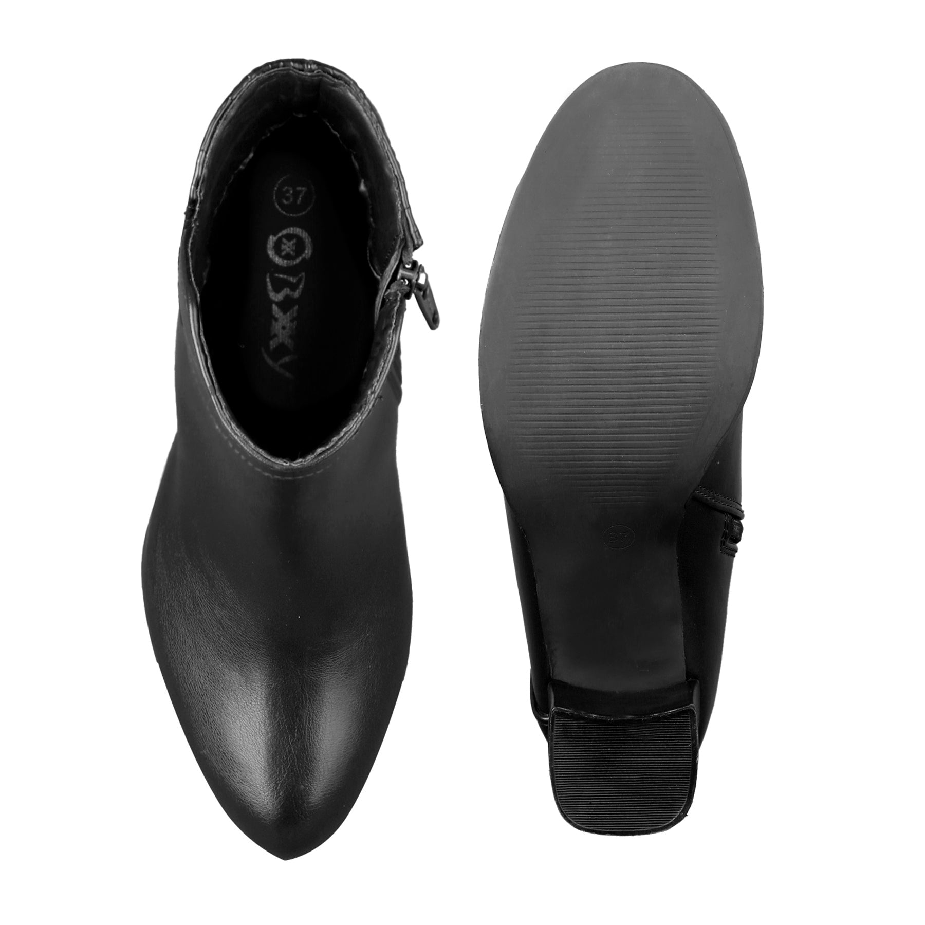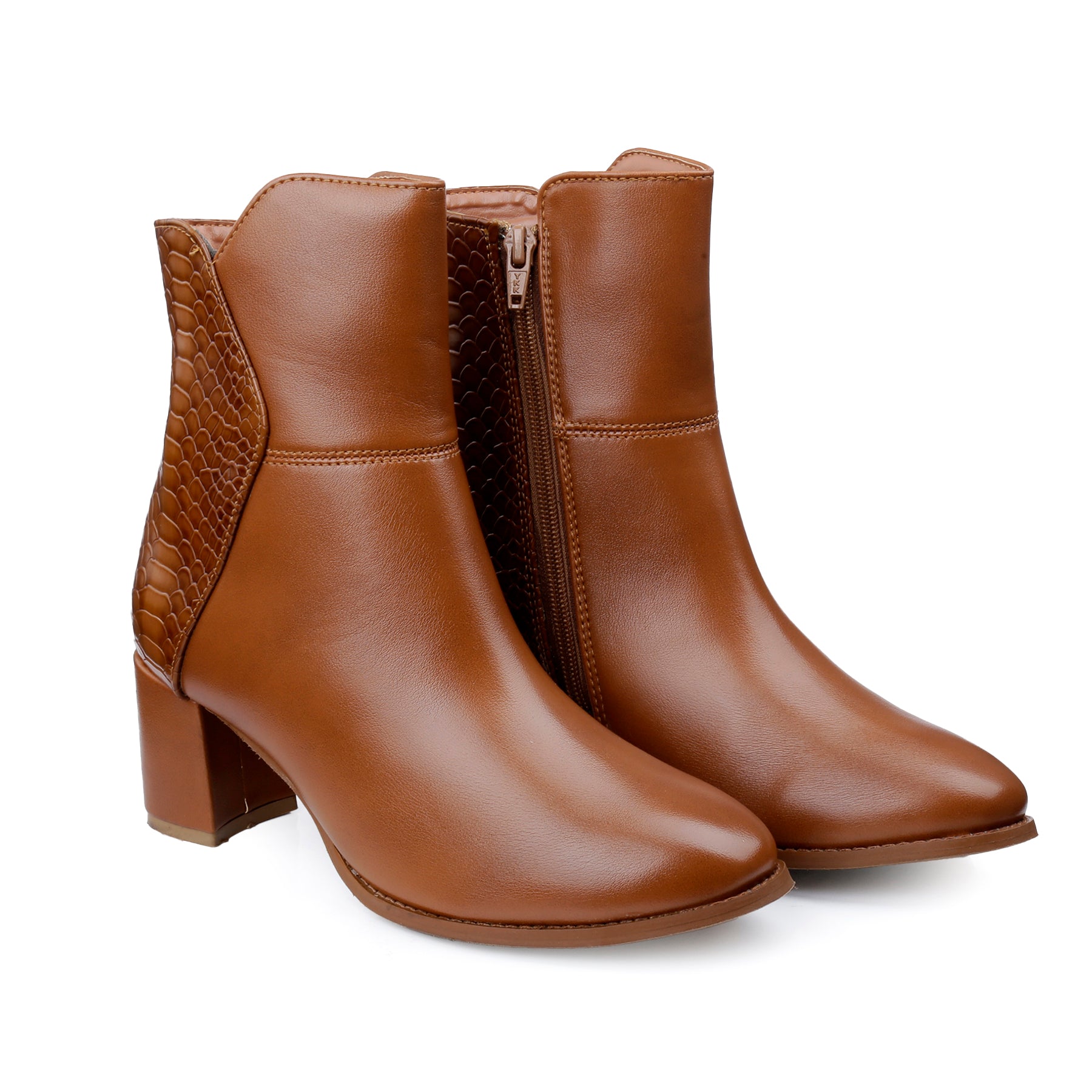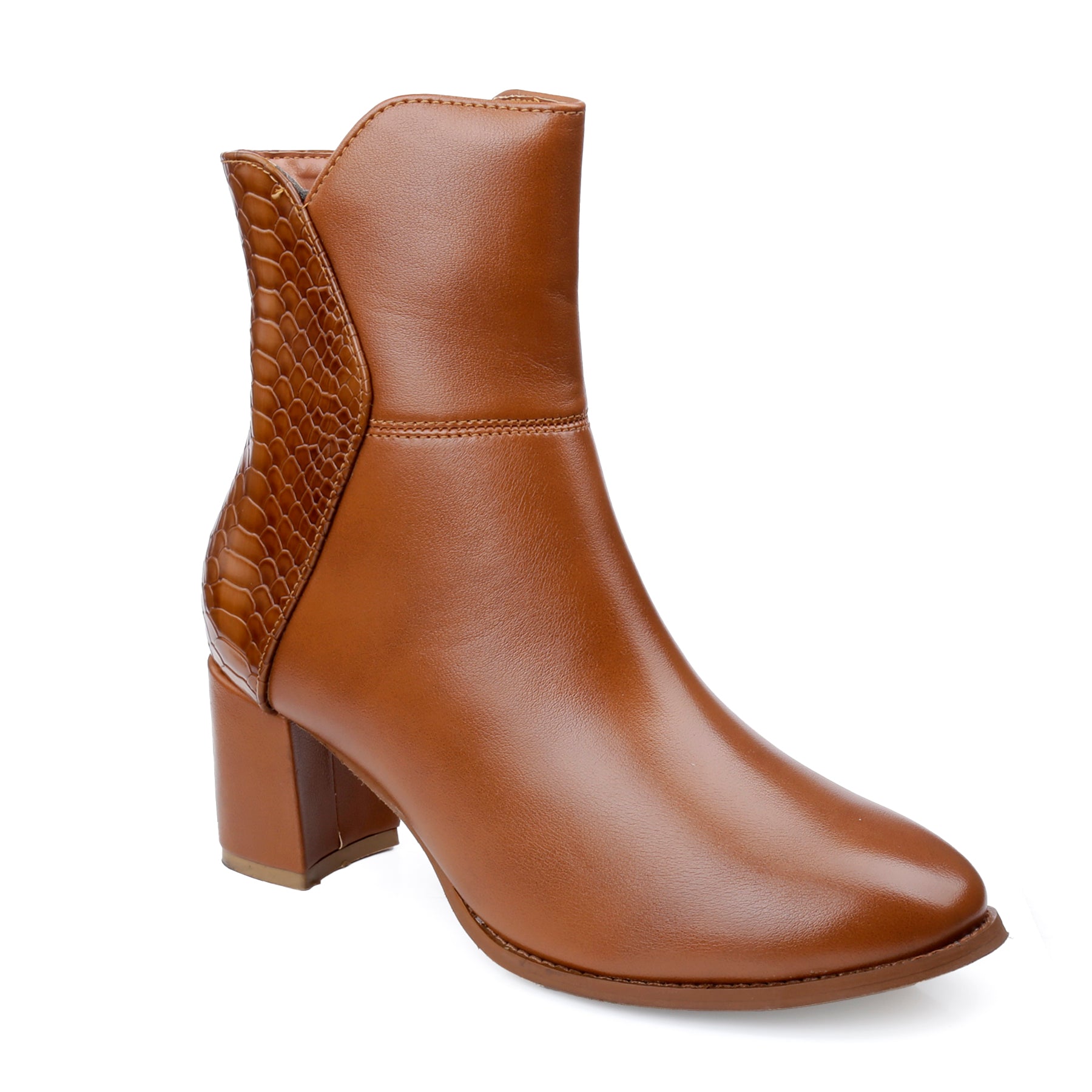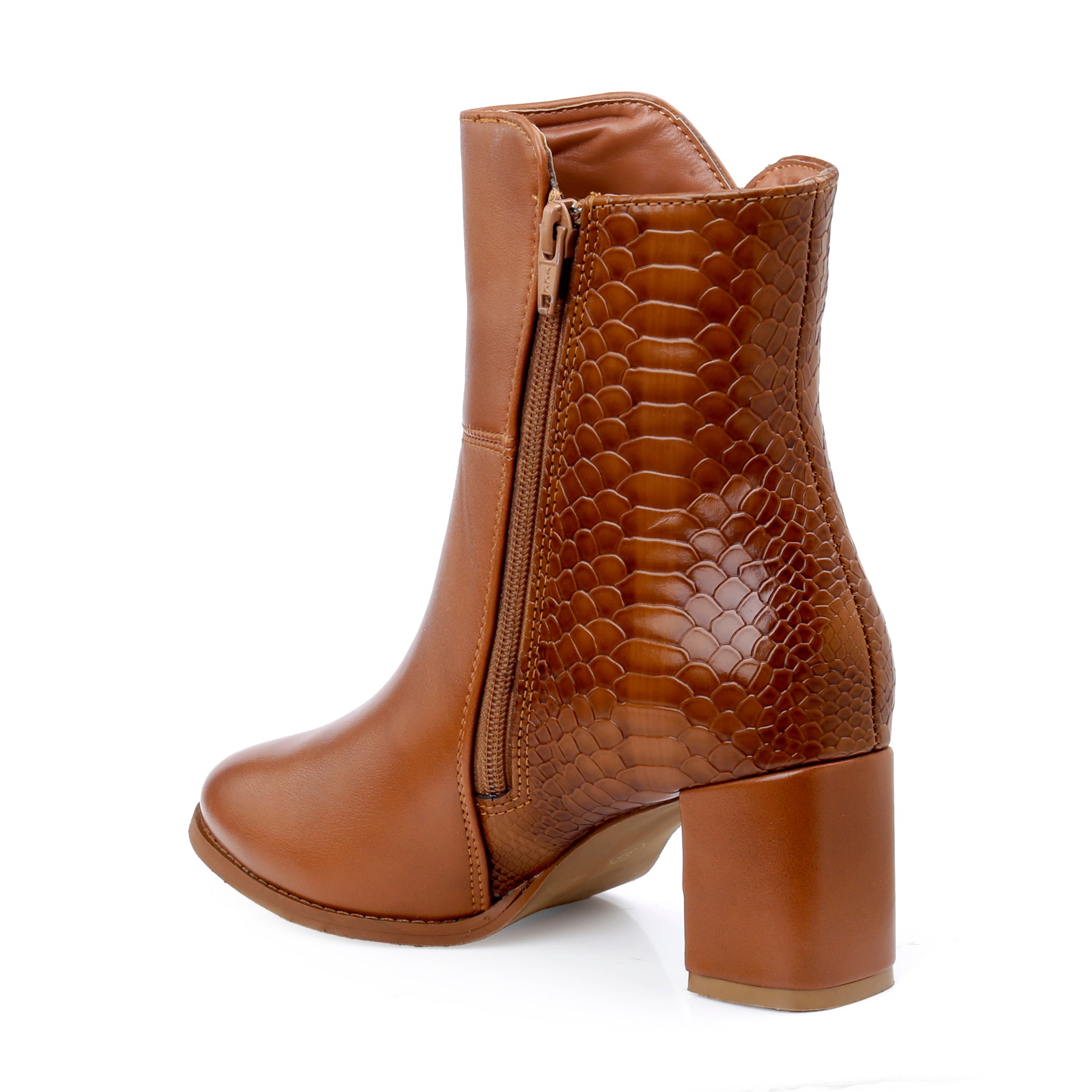 These exquisite ankle boots are designed to combine sophistication, style and comfort. Made from high-quality faux leather, they feature a smooth, polished finish on the front and sides, giving them a sleek and refined appearance. The rear section of the boots is adorned with a crocodile-textured pattern, adding a touch of luxury and uniqueness to the design.